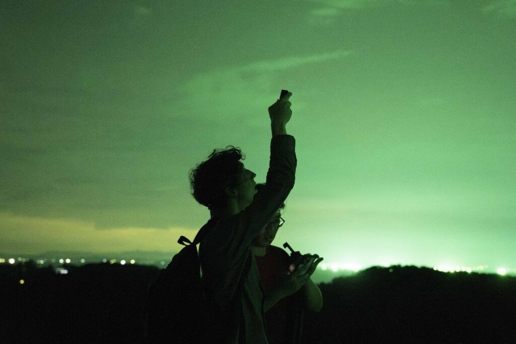 In Jigging Green, Casper Su’s photographic, performative, and video installations probe how power, visibility, and vulnerability are entangled within contemporary lighting systems. For Su, the green skyglow seeping in from the western horizon mediates the spatial politics between nonhuman and human bodies, ecologies, and actions. “Jigging” appears in his work as an act of seduction—mirroring how seeing becomes inseparable from control—and further asks: In a nocturnal environment overtaken by perpetual brightness, how are the shelter and agency once offered by darkness erased and overwritten? What dangers emerge from the loss of “natural darkness”?